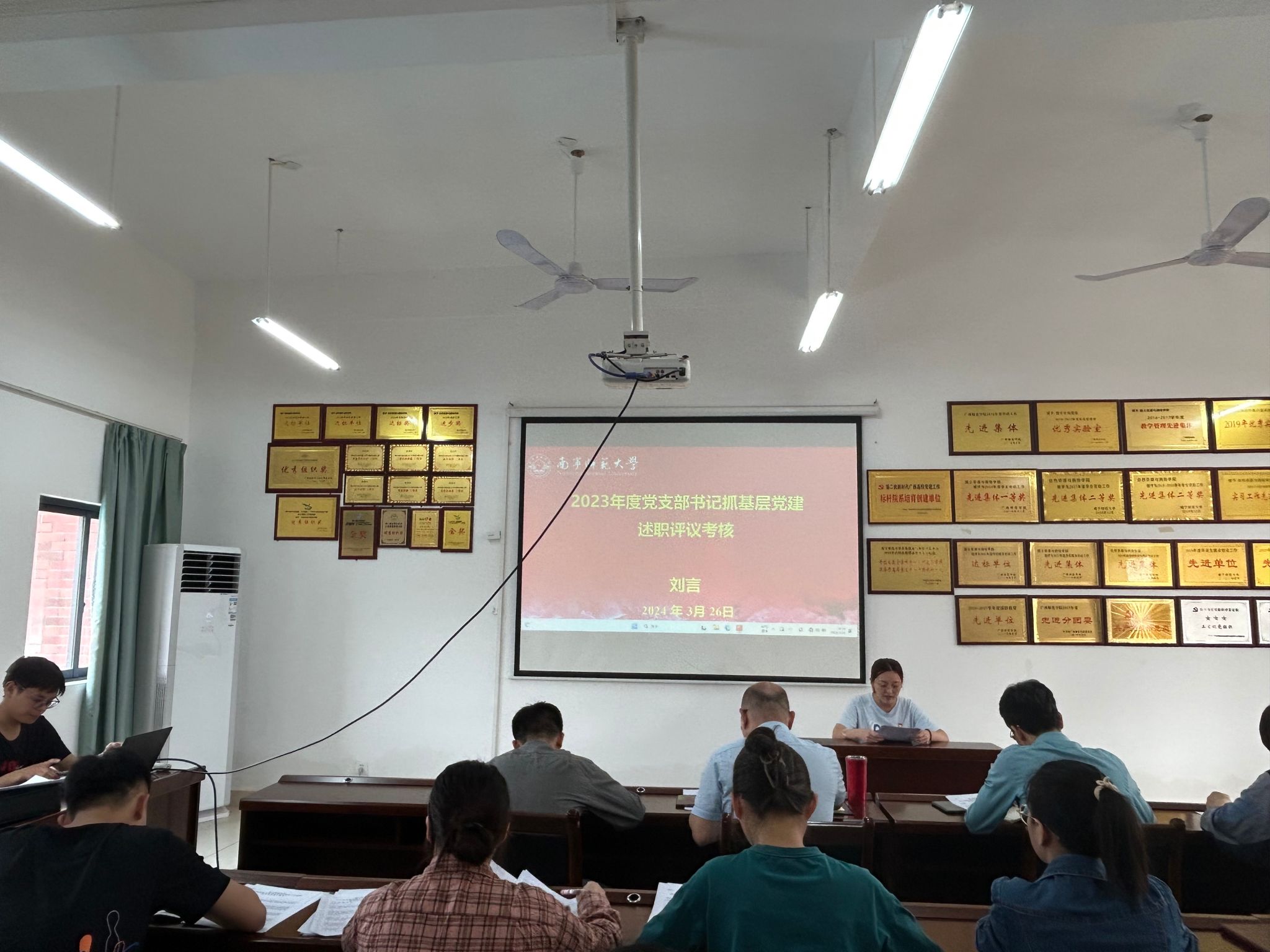 会议听取了3名教工党支部书记、6名学生党支部书记2023年抓基层党建工作现场述职,会议采取组织考评与党员群众评议相结合方式,以无记名投票形式对参加述职的9名党支部书记进行评议考核。