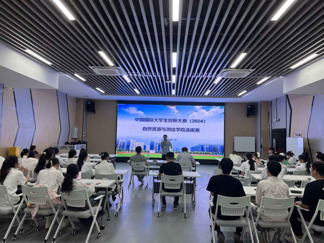 于兰园食堂三楼大学生创业孵化园路演厅B19,举办2024年中国国际大学生创新大赛院内选拔赛。选拔赛对象为我院2020-2023级全体本科生、专升本学生及研究生,同时邀请了马骥老师担任评委。