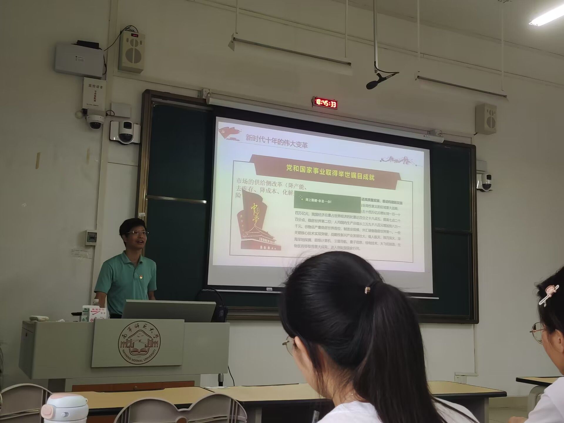 在武1-117教室开展题为“新时代十年的伟大变革”的发展对象专题党课,本次党课由学院党委组织员彭定新老师主讲,我院59名发展对象参加了此次培训。