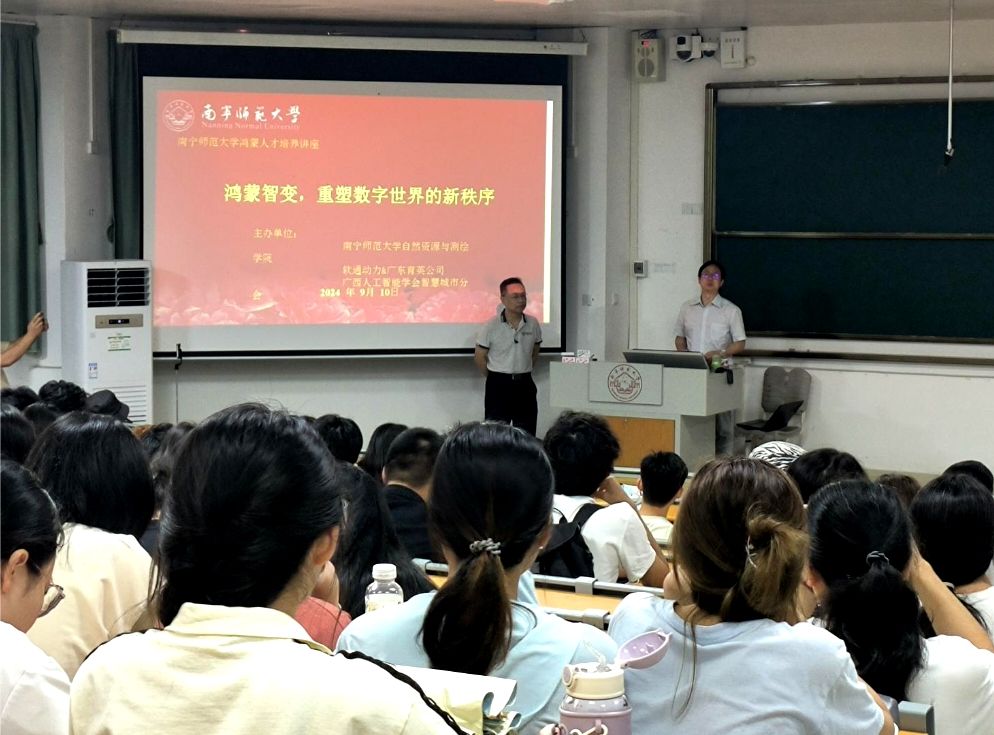 于2024年9月10日在武2-121教室举办了主题为“鸿蒙专家‘AI+’”的专题报告。本次报告特邀软通动力集团的鸿蒙专家江伟峰老师主讲,我院2021级和2022级学生参与。报告会由学院副院长段炼主持