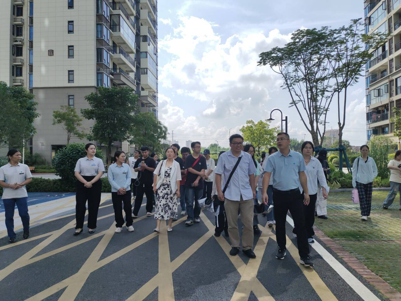第二站,碧桂园时代城项目经理蒋旭及各部门负责人一同热情接待我院师生,蒋经理带领师生们参观品质居住新城-碧桂园时代城项目的住宅小区园林环境、消防监控室、水泵房、发电机房、物业服务中心等,全面了解“四保一服”相关工作及服务要点。参观结束后,蒋经理分享了自己的碧桂园物业职业发展成长经历和相关经验,为同学们今后的职业发展点燃了“指明灯”。碧桂园物业与我院有多年的合作基础,以《物业管理》课程实习为契机,为双方创造了更广、更深入地交流,为后续开展校企合作、人才培养和就业拓岗奠定了坚实的基础。