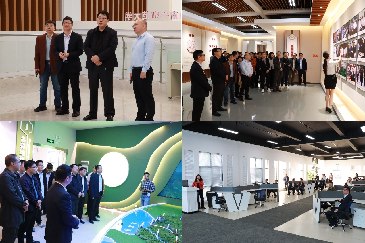 参会人员集体参观了学校教学成果展、地学馆以及学院“卫星+”空间AI自然资源智能治理广西高校工程研究中心,深入了解学校、学院近年来的教学科研成就和硬件设施建设情况。