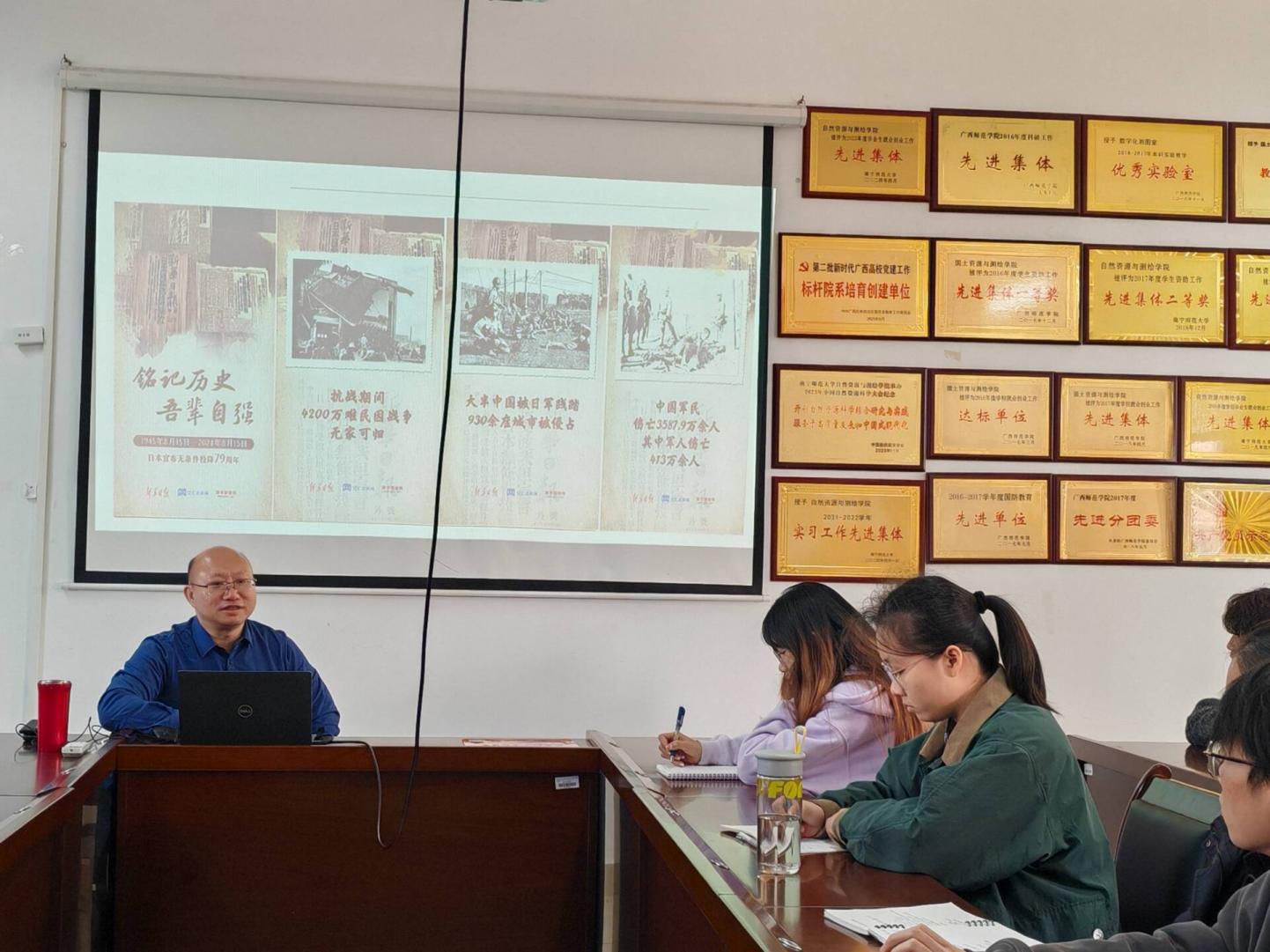 团委在地源楼A412邀请学院党委书记黎先给学院团委、学生会全体学生干部讲授以“树立正确历史观,坚定理想信念”为专题的主题团课。