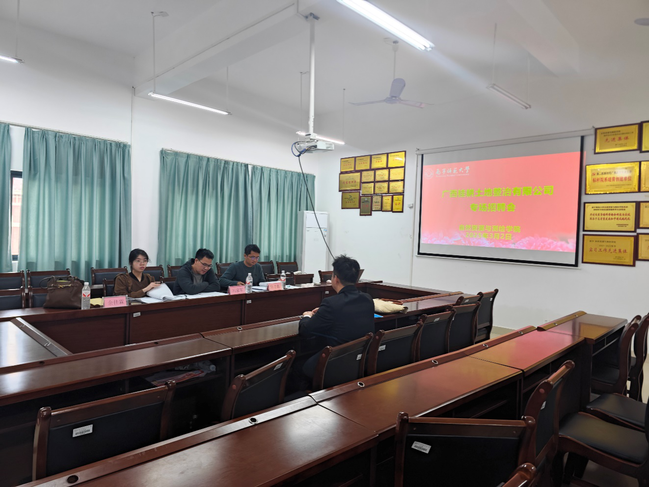 联合广西桂耕土地整治有限公司举办“校企联动促就业”专场招聘活动。广西桂耕公司冯家军携企业团队到校,面向学院土地资源管理、测绘工程专业毕业生开展岗位招聘与职业指导,旨在深化校企合作,精准搭建人才供需对接平台,助力毕业生高质量就业。