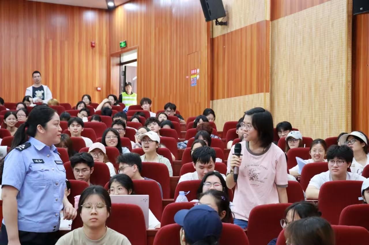 讲座伊始,张警官结合高校诈骗典型案例,通过播放反诈警示视频、反诈知识普及和互动环节,剖析兼职刷单、校园贷、借用银行卡电话卡等经典诈骗手段,揭露了犯罪分子的作案套路。她聚焦高发受骗群体——大学生,利用他们求职、社交、网购等场景设计话术,以“识破话术陷阱、保护个人信息、拒绝利益诱惑”为核心,传授实用防诈技巧,并提醒同学们下载“国家反诈中心APP”预防诈骗。在互动环节,同学们积极参与,纷纷对张警官的提问给予热烈响应。张警官针对同学们的答复进行了细致点评,指出了其中的不足之处,并再次强调了提高反诈意识的重要性。会议尾声,莫雅兰再次强调,反诈教育是校园安全工作的重中之重,全体学生需时刻保持警惕,将“不轻信、不转账、不泄露”的原则内化于心、外化于行。