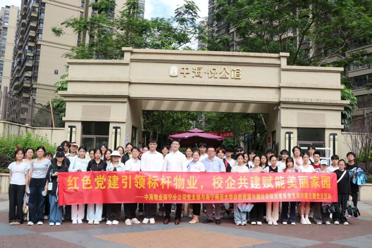 房地产开发与管理系教工党支部党员、房地产开发与管理系本科生党支部及本科生共同前往中海物业南宁分公司开展党建共建主题党日活动。此次活动以“红色党建引领标杆物业,校企共建赋能美丽家园”为主题,校企双方党支部成员共同交流党建经验,签订了党建共建协议,探讨合作内容。