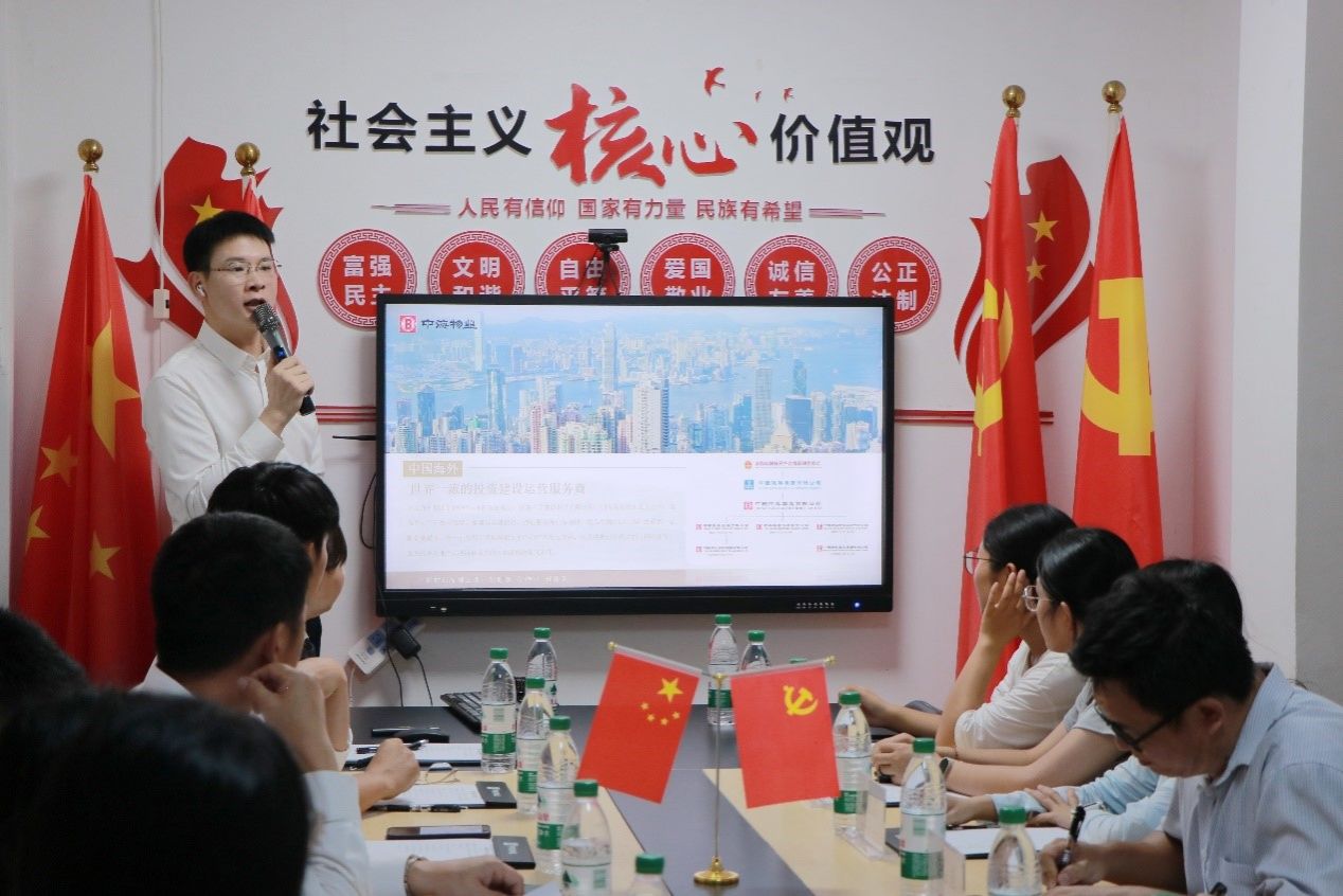 师生,人事行政部梁浩经理介绍中海物业公司管理现状,介绍了中海物业南宁分公司党支部的“红色物业·一核多元”基本情况、党建工作特色以及在疫情大战大考中的积极作用,助力乡村振兴的“一二三”工作法。
