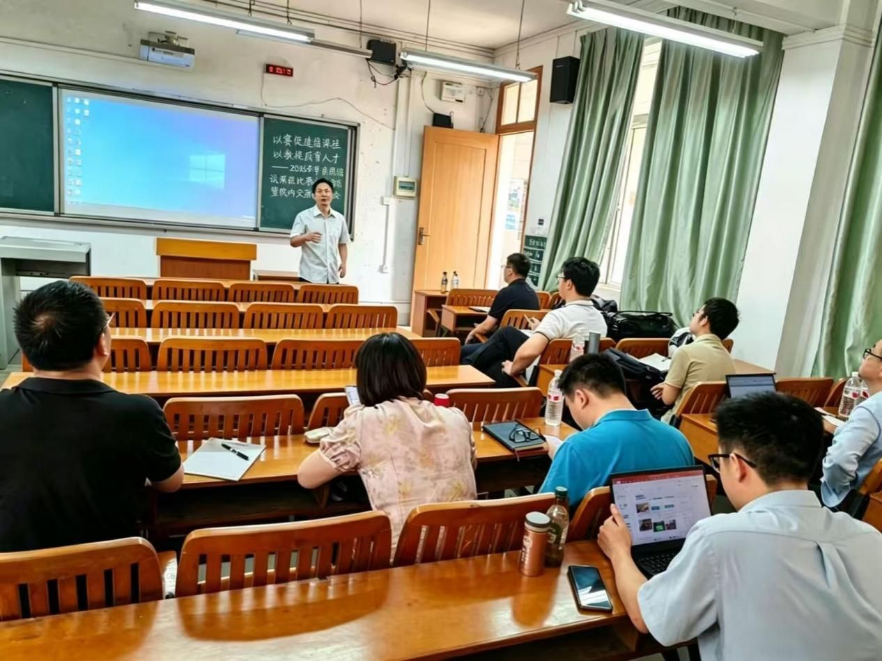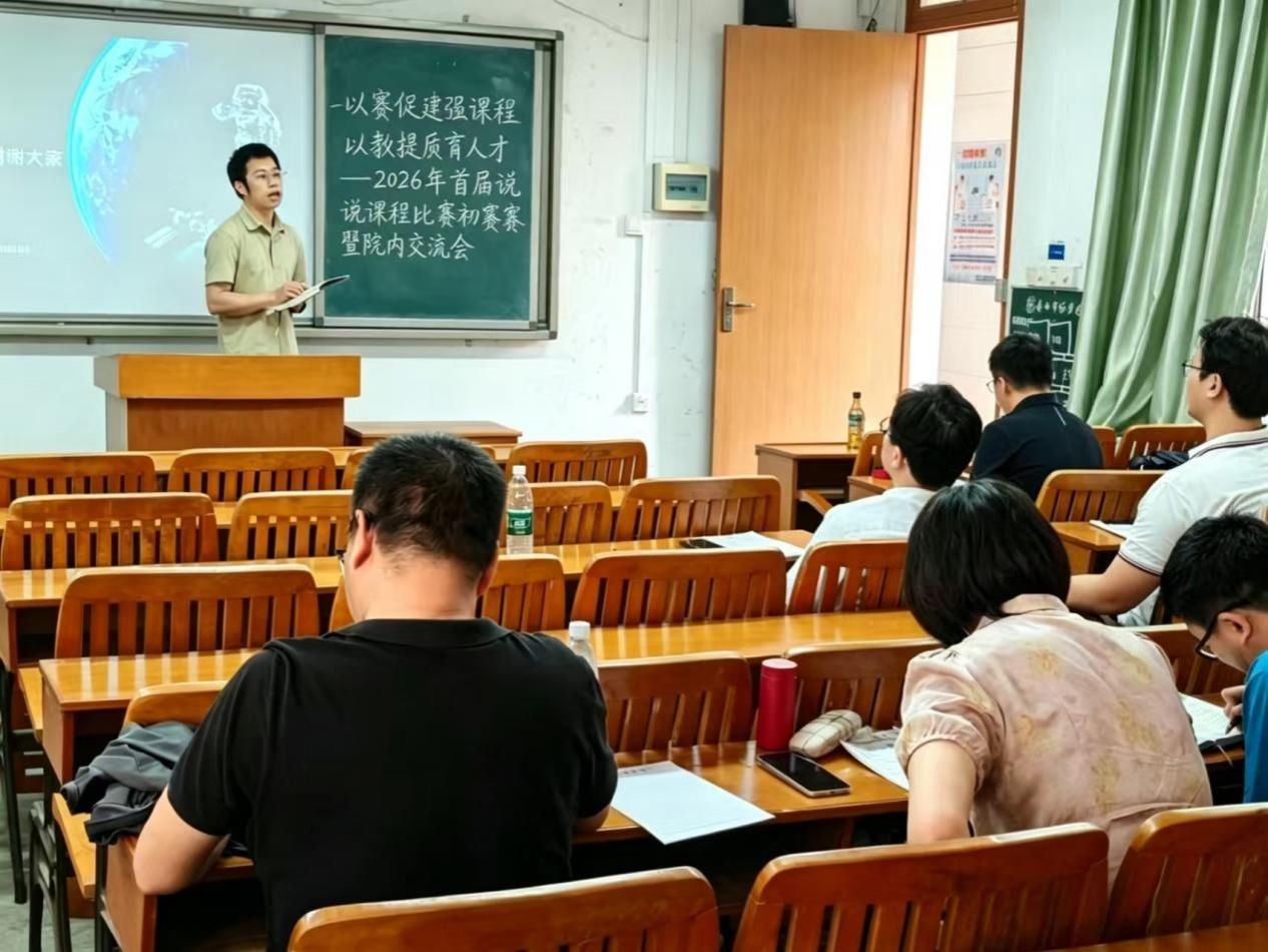 2026年首届说课程比赛初赛暨院内教学交流会在明秀校区思远楼教205顺利举行。学院副院长段炼,土地资源管理系周兴教授、吴壮金副教授,房地产开发与管理系娄信强主任及校级教学督导肖智副教授担任点评专家,部分教师参加了现场观摩。