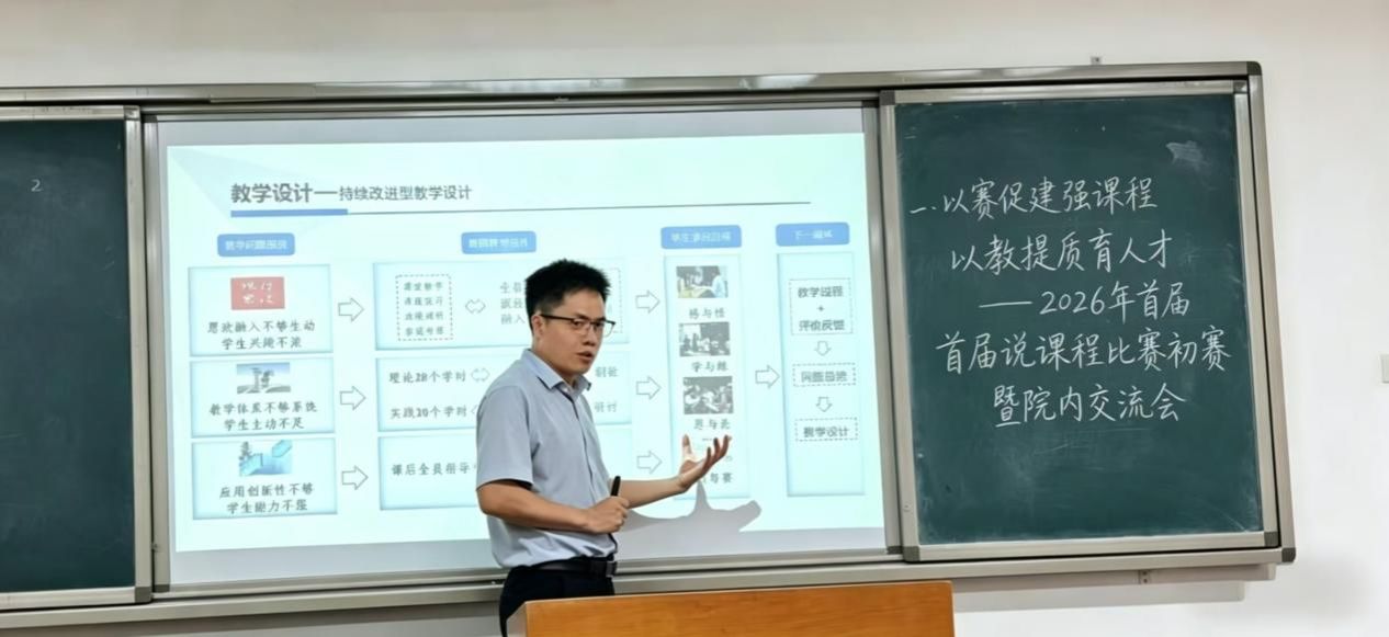 此次活动既是教学成果的集中展示,也是一次高质量教学研讨交流。学院将以本次比赛为契机,持续深化课程内涵建设,推进教学改革创新,聚力打造自治区级、国家级一流课程,不断提升人才培养质量,为学院和学校高质量发展提供有力支撑。