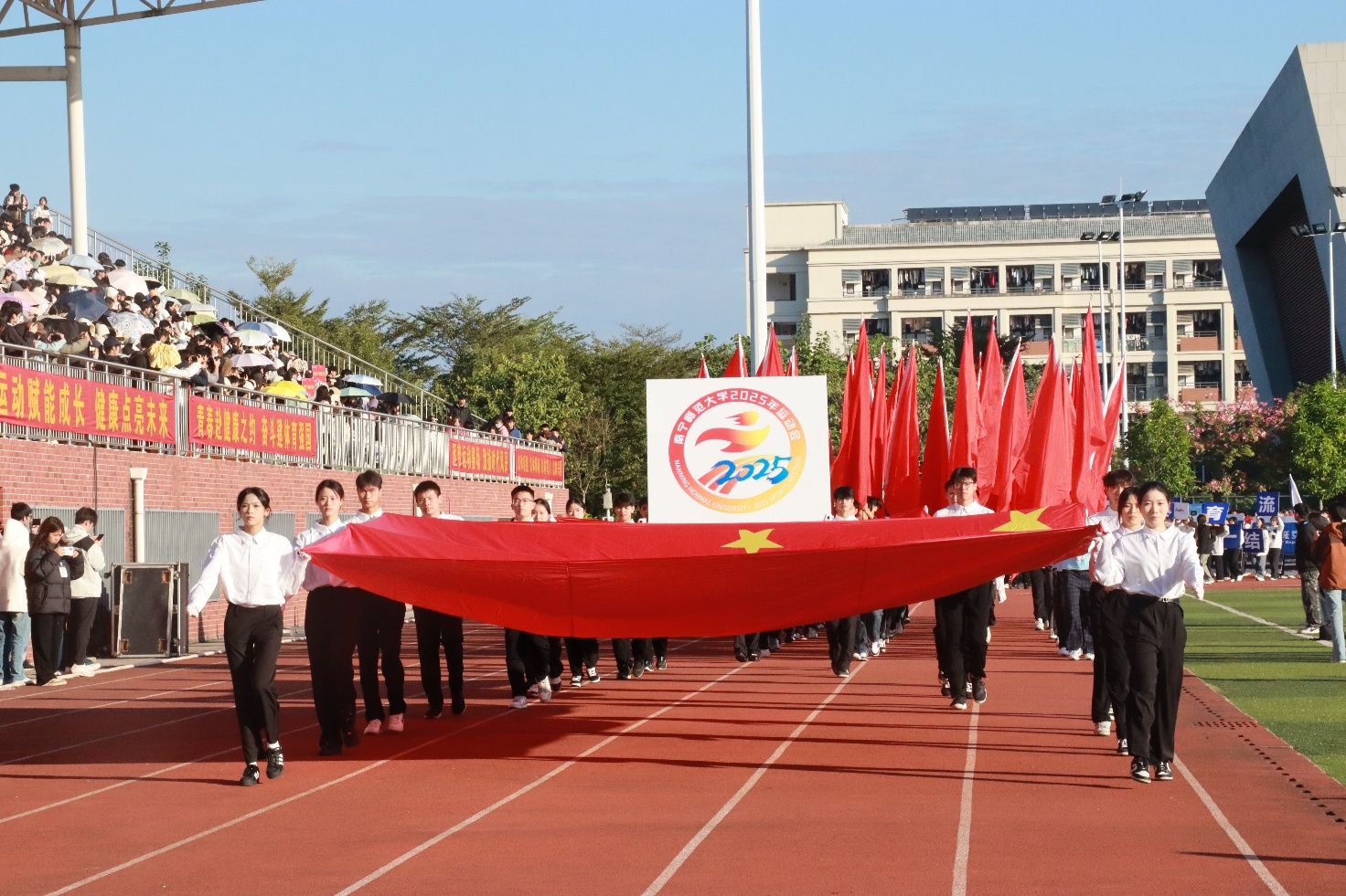 校运会在武鸣校区松园田径场举行。开幕式上,激昂的旋律回荡在赛场,国旗护卫队护送国旗入场,各学院方阵依次亮相。偷拍在线