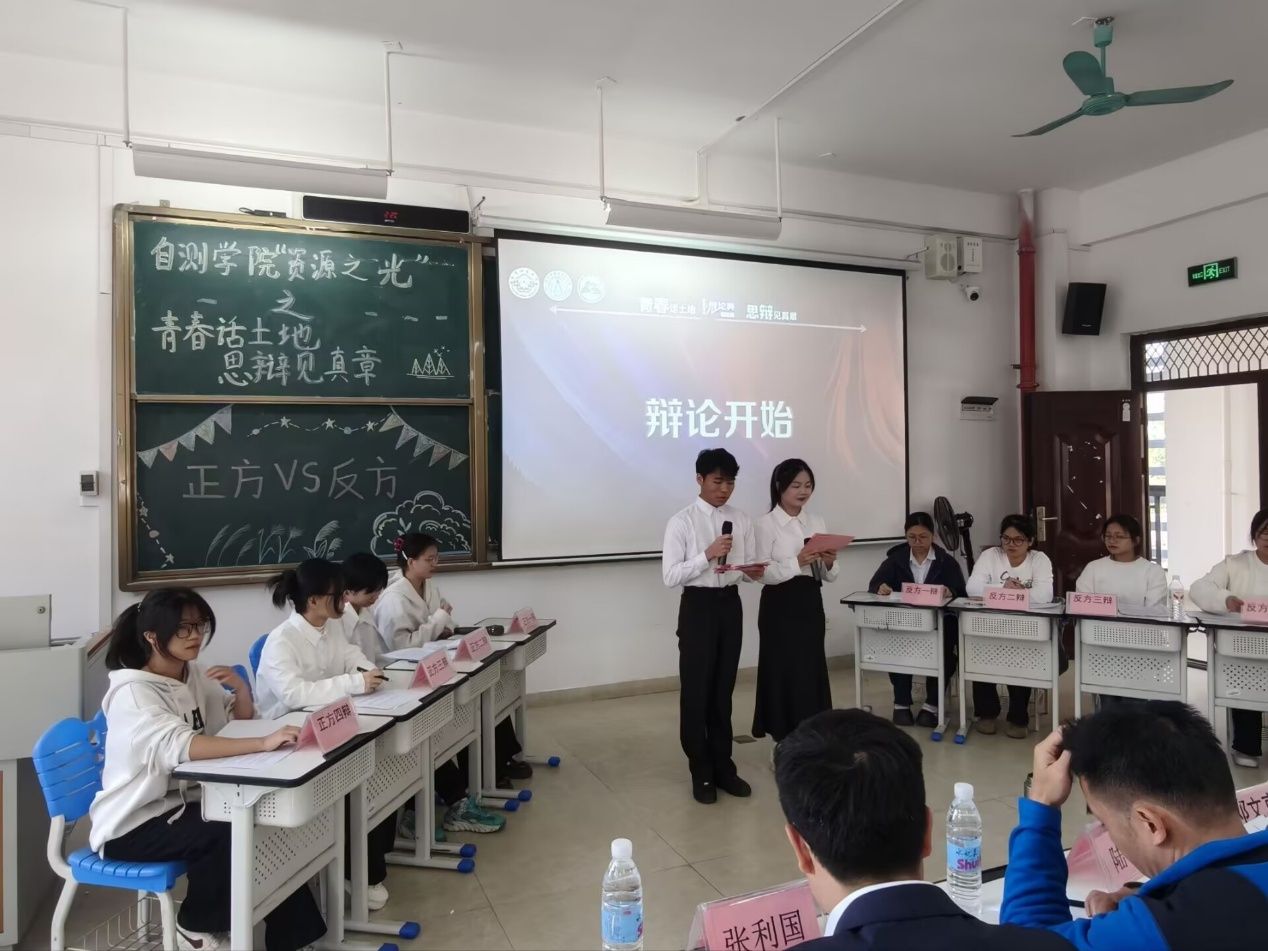 赛事聚焦土地资源管理前沿议题,以辩论为载体,助力学子深化专业认知、提升思辩能力。本次初赛设置两场焦点辩论,围绕土地资源管理领域热点议题展开深度交锋,4支参赛队伍摩拳擦掌、各展其长。首场辩论聚焦“土地保护应以人为本还是以自然为本?” “土地生态修复,应侧重人工干预修复还是自然恢复为主?”展开。赛场上,选手们思路清晰、攻防有序,从专业理论到实际案例的论证交锋此起彼伏,为现场评委与观众呈现了一场兼具专业深度与思辩热度的思辩盛宴。最终24土管2班“不准插我队”和24土管1班“我说的队”成功晋级决赛,25土管2班“对对对队”与25土管1班“只会诡辩队”则荣获三等奖。24土管2班韦春虹与24土管1班陈文伟两名同学凭借优异表现获得“最佳辩手”的荣誉称号。